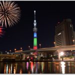 川を挟んだ東と西で花火が見られるので、反対側にいる観客の光が見えます。